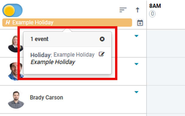 - Hover over the empty space on the date cell next to the head count. The Calendar event icon displays.