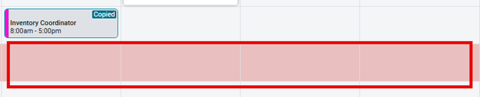 - You cannot paste shifts into ineligible cells (ineligible shifts appear in a lighter shade of red).